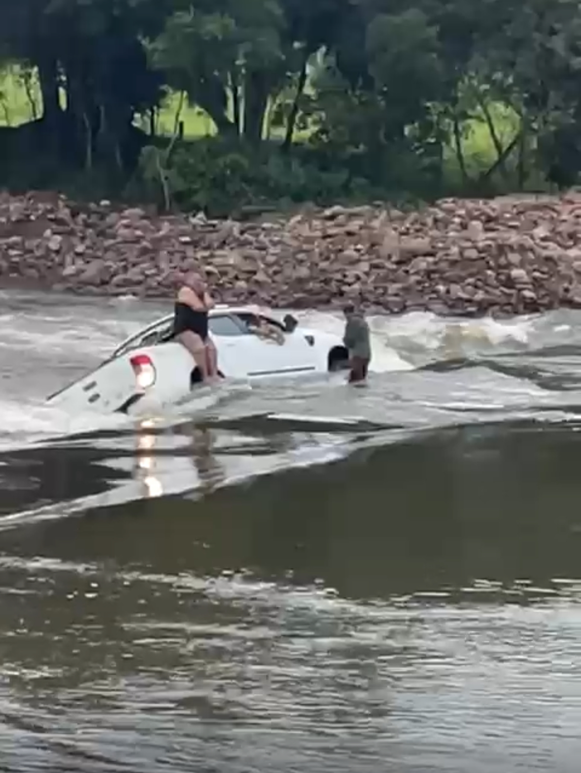 Apesar do susto, os ocupantes do veículo conseguiram sair por conta própria e não houve registro de feridos. A retirada da caminhonete foi realizada com o auxílio de uma máquina carregadeira, mobilizada para o local.