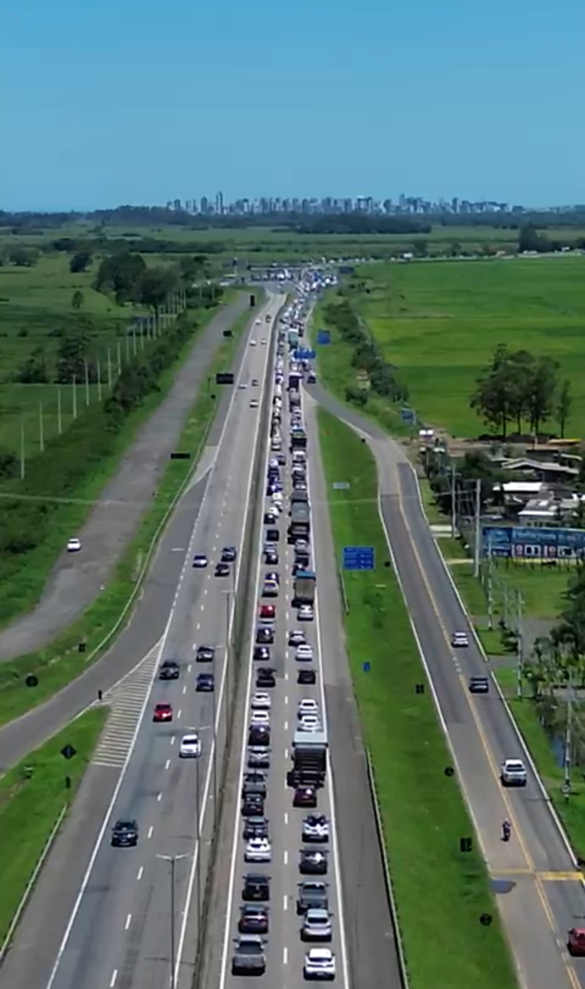 Desde o período que antecedeu o Natal, motoristas que trafegam pela BR-101 Sul, em Santa Catarina, têm enfrentado trânsito intenso e congestionamento, especialmente nas praças de pedágio de São João do Sul e Maracajá. O fluxo elevado de veículos, típico das festas de fim de ano e da temporada de verão, tem gerado lentidão e filas, situação que se repete quase diariamente.