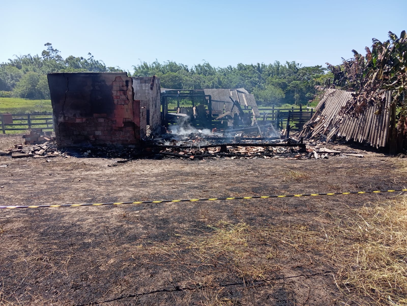 Para conter o avanço do fogo, foram utilizadas duas linhas de ataque e aproximadamente 7.000 litros de água. Apesar dos esforços, a residência foi totalmente destruída pelas chamas. O galpão vizinho também foi atingido, mas a guarnição conseguiu evitar danos ainda maiores.