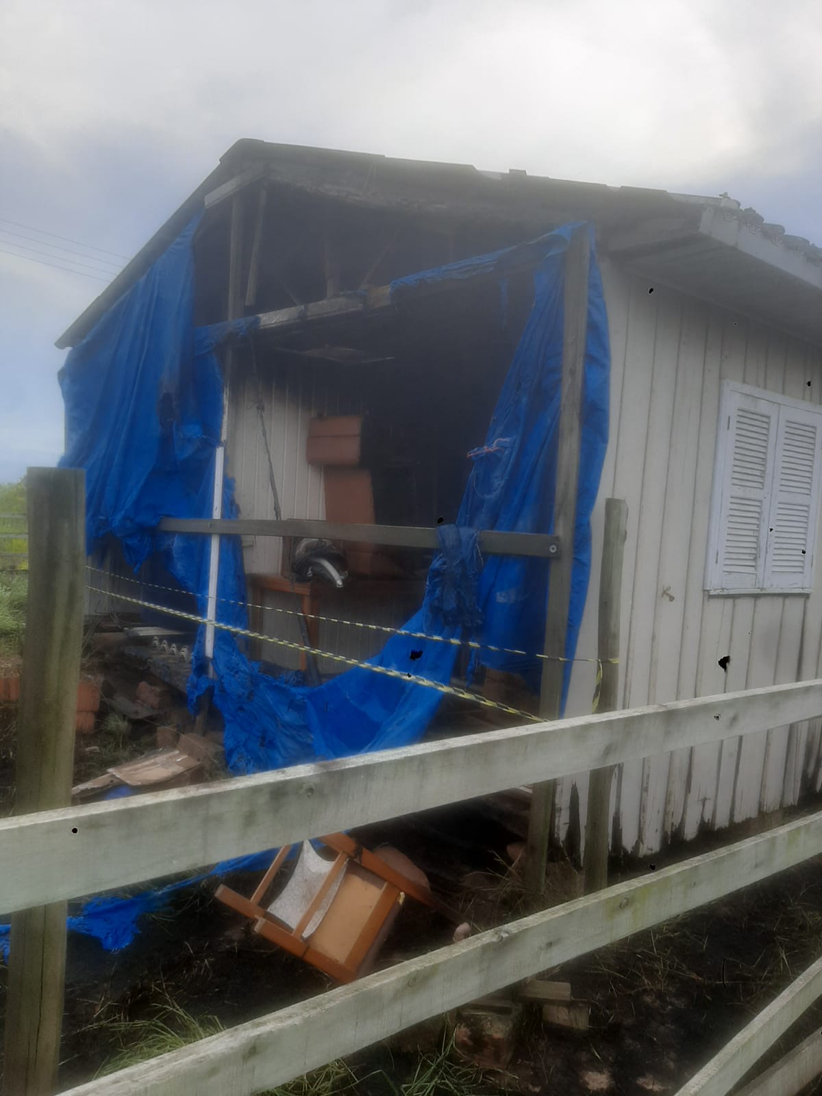 Inicialmente, a guarnição foi acionada para um incêndio em vegetação, mas ao chegar ao local, constatou que o fogo já havia alcançado uma casa de madeira de aproximadamente 36 m², localizada na Estrada Geral.