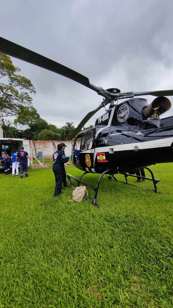 Por volta das 10h, a aeronave foi acionada para atender um homem de aproximadamente 60 anos que sofreu uma queda de 2,8 metros no município de Jaguaruna. A vítima apresentava traumatismo cranioencefálico grave e foi encaminhada ao Hospital Nossa Senhora da Conceição (HNSC) em Tubarão para tratamento neurológico especializado. A operação contou com o apoio do Corpo de Bombeiros Voluntários de Jaguaruna.