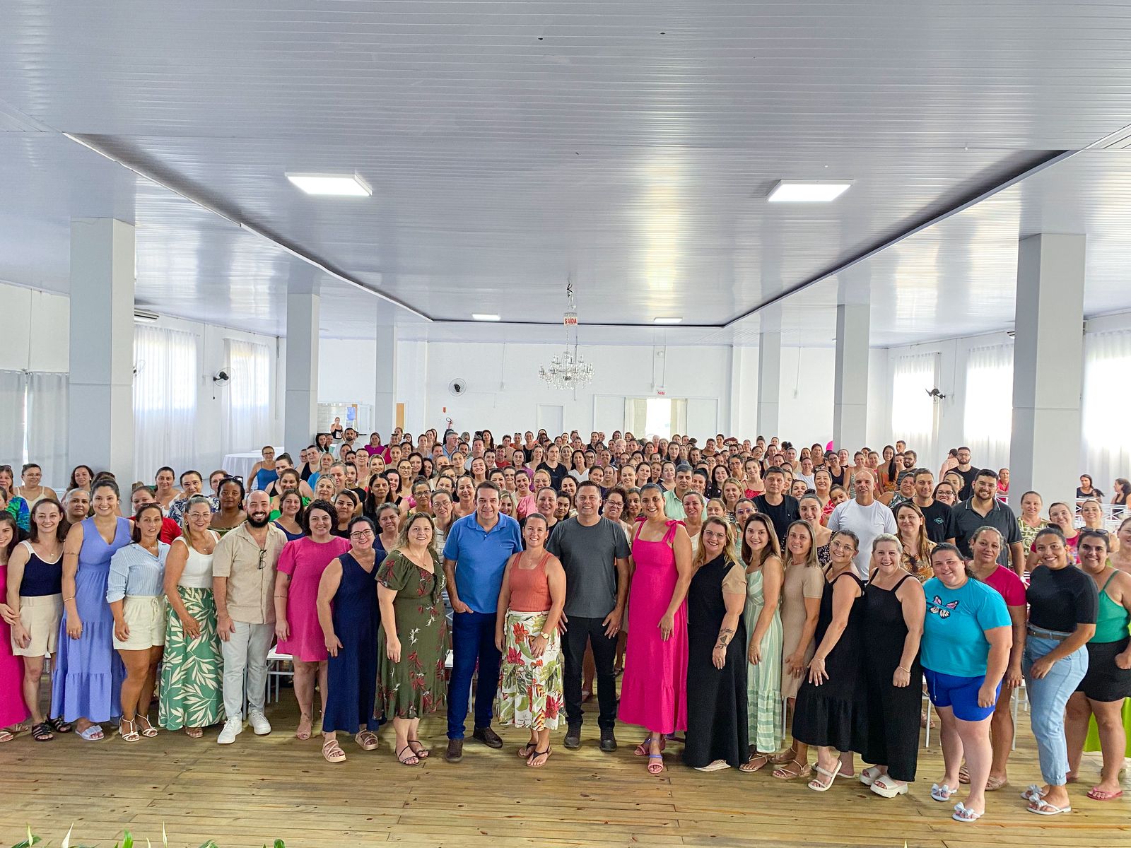 Nesta quarta-feira (26), a Secretaria Municipal de Educação de São João do Sul promoveu um grande encontro que reuniu mais de 200 servidores da rede municipal de ensino. O evento contou com a participação de professores, diretores, auxiliares, merendeiras, motoristas, monitores e profissionais dos serviços gerais, reafirmando a importância da união e do trabalho em equipe para o sucesso da educação no município.