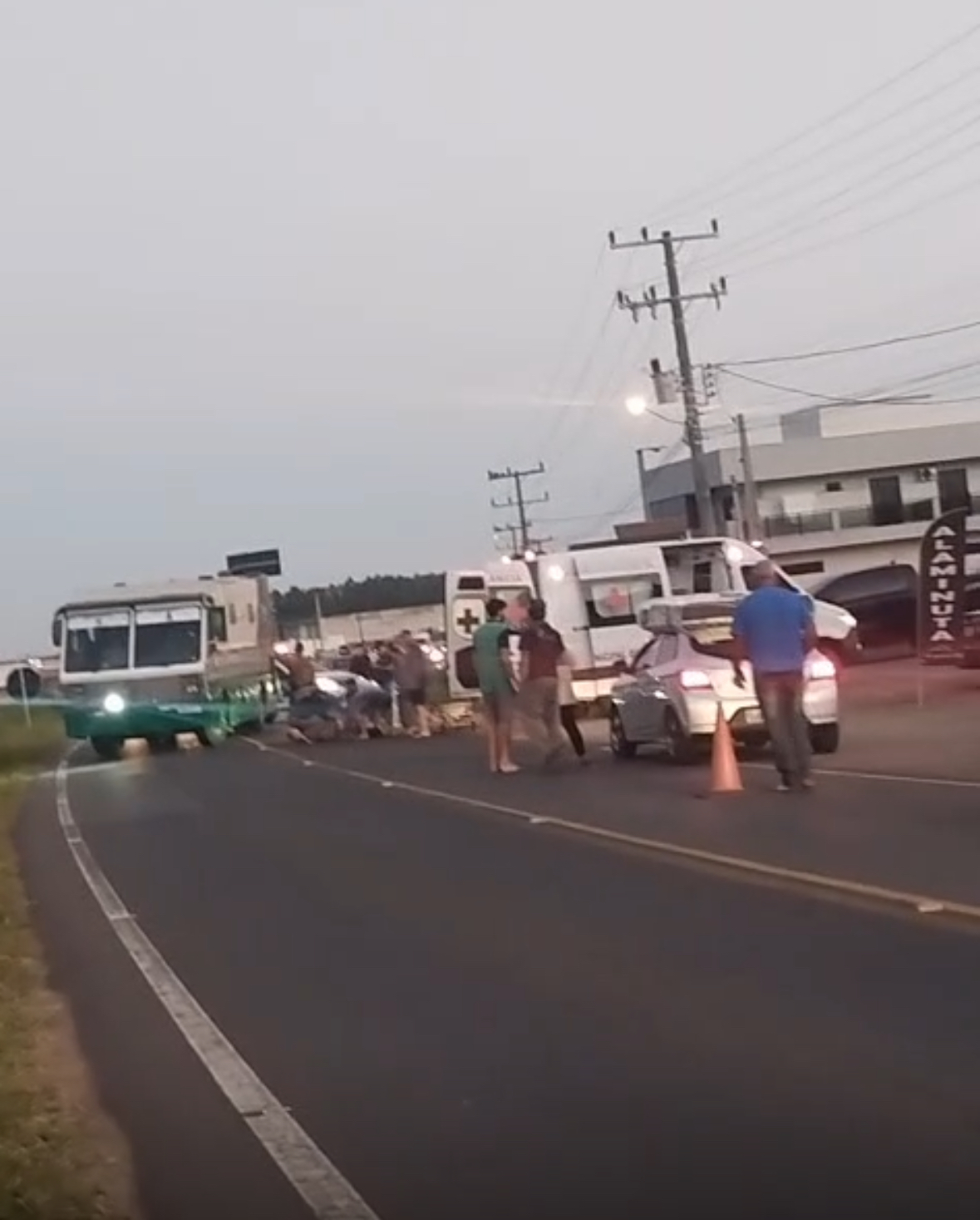 Uma motociclista de 63 anos foi atingida por um motorhome na tarde desta sexta-feira (25), em São João do Sul. O acidente aconteceu por volta das 17h50, na SC-290, nas proximidades do Xis do Gaúcho e Duda Motos Car.