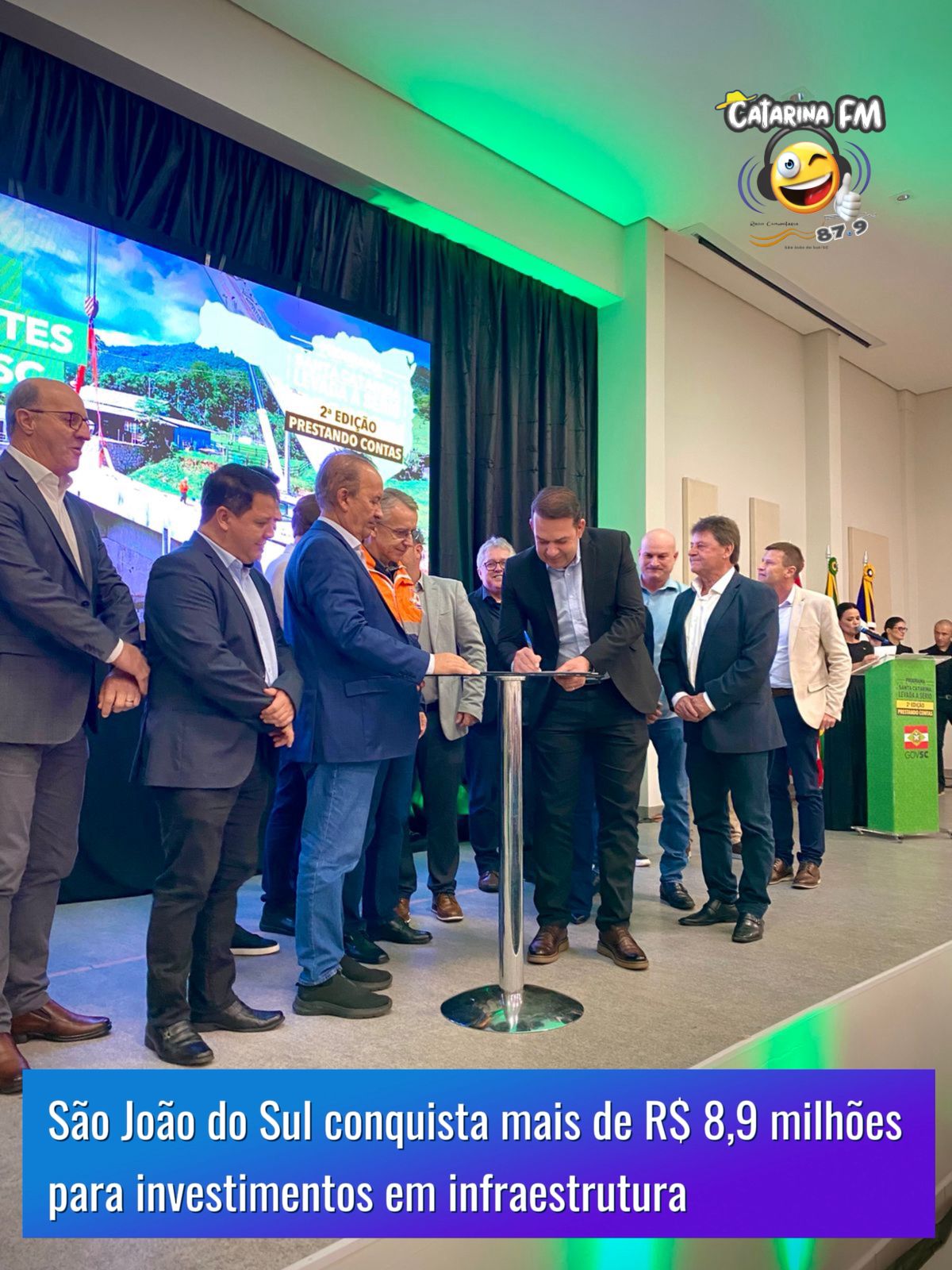 A Prefeitura de São João do Sul comemora uma grande conquista para o desenvolvimento do município. Nesta sexta-feira, 23 de maio de 2025, o prefeito Alex Bianchin esteve em Araranguá, durante a visita do governador de Santa Catarina, Jorginho Mello, na AMESC (Associação dos Municípios do Extremo Sul Catarinense), e garantiu mais de R$ 8,9 milhões em recursos destinados à infraestrutura local.